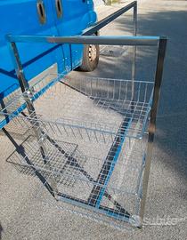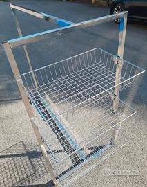 Ultimo Stender cromato quadro di design a T con ceste di cm 60×40 in filo di ferro