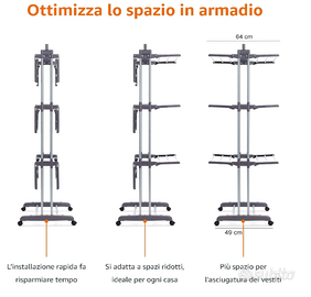 Stendibiancheria a torre, perfetto per far asciugare all’aria gli abiti; ideale per famiglie numerose