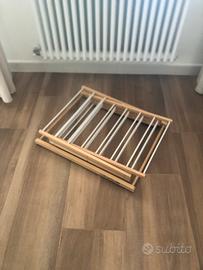 Stendibiancheria con sistema di apertura a pantografo estensibile a 2 altezze Struttura in legno massiccio di faggio e bacchette in materiale plastico Dimensioni aperto: 63 x 51 x 87.5131 cm Dimensioni chiuso: 66 x 51 x 12 cm