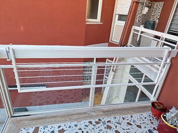 stendibiancheria artigianale apribile sia all'esterno che allinterno e richiudibile a scomparsa dotato di staffe di montaggio facile da istallare grazie al sistema di fissaggio non richiede nessun tipo di foro sul corimano ottimo per condomino ,realizzato in ferro zincato e verniciato a fuoco di colore bianco disponibile in 4 misure ,100,150,185,215