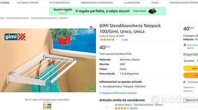 Per inutilizzo, (errato aquisto), vendo a meno di metà prezzo: N. 2 Stendibiancheria Telepack 100, in Alluminio, Resina