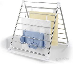 Stendibiancheria per vasca o doccia Utilizzabile completamente aperto in orizzontale o in verticale o a triangolo Piedini in plastica ruotabili Larghezza: 65 cm Portata: 10 kg