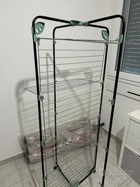 Vendo stendibiancheria a torre con 40metri di filo come in foto, 4 piani X2 richiudibile salvaspazio con ruote. Dimensioni altezza 170cm , larghezza 70cm Ritiro a mano in zona Pisa