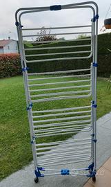 Stendibiancheria verticale con ruote come nuovo, richiudibile. Usato solo un paio di volte ma preferisco il modello tradizionale. Ha una bacchetta leggermente curvata come da foto ma non ne pregiudica l'utilizzo. Pagato più di 70 euro. Misure aperto 70x70 cm altezza 170 cm. Ritiro a Dolzago