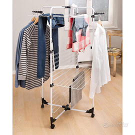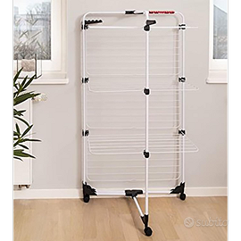 Capacità Massima in Minimo Spazio: Con ben 30 metri di stenditura totale, puoi stendere fino a 3 carichi completi di lavatrice. La sua struttura a torre lo rende perfetto per ambienti piccoli come bagni, balconi o docce.