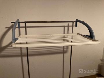 Vendo stendino per biancheria in resina 100% con agganci brevettati, scorrevoli in profondità per adattarlo ad ogni tipo di balcone. Larghezza 98 cm e profondità 50 cm.