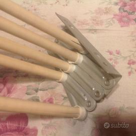 Stendino stendibiancheria da parete, vintage ma nuovo, comprato decenni fa per il balcone e mai montato. Lungo 76 cm, come da foto 2 ci sono due fessure ma la gomma è molto solida e hanno tutta l'aria di restare così. È un attrezzo bello robusto, non come la roba che circola oggi. Solo a mano, perché non saprei come imballarlo.