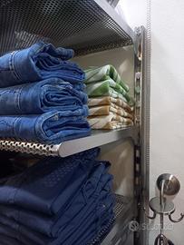 Stigliatura in acciaio tre metri lineari con 8 scaffali traforati 4 staffe da muro e 3 staffe porta abiti scaffale 41 cm per 1 metro