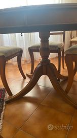 Salve vendo tavolo allungabile per 12 e 6 sedie con tappezzeria Stile inglese inoltre porta tv tutto stile inglese originale ! Va carico ritiro e spedizione!
