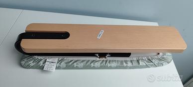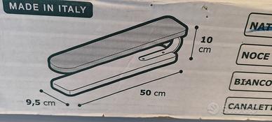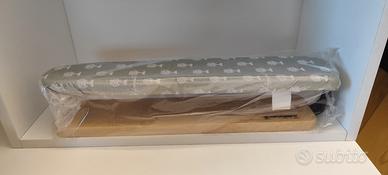 usato pochissimo, Asse sagomata per stirare con facilità le maniche. Base in legno massiccio e supporto in ferro. Il piano stiro è ricoperto con La Foderina in cotone e polvere di alluminio e Il Mollettone in fibra di poliestere. La scatola è un po' sporca perché ci è caduto un pochino di detersivo, ma nessun danno.