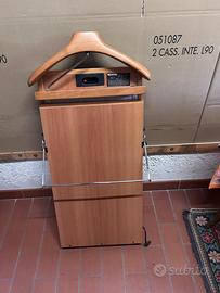 Stirapantaloni elettrico Foppapedretti in legno di ciliegio, con appendiabiti e mensola portaoggetti. Dotato di fissaggio a parete e spina elettrica. Perfettamente funzionante. Visibile a San Marino. 100€