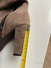 Eleganti stivali, tacco alto (foto con misure). Pelle scamosciata beige, Vera pelle anche all’interno. Nuovi, mai indossati, purtroppo non ho più la scatola, solo la busta Cinti. Plateau. Zip laterale per una facile calzata. CINTI. N.36