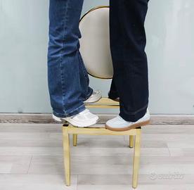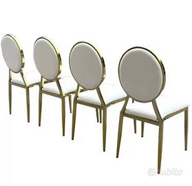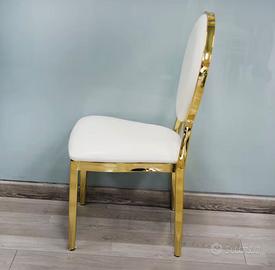 vero affare !! stock 100 sedie moderne ideali per matrimoni, feste, banchetti, uso alberghiero, sedie per tavolo da pranzo\soggiorno. in acciaio inossidabile. design dorato cuscinetti pelle bianca impilabile e durevoli con gambe affusolate e schienale. sedia di lusso