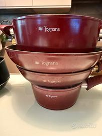 Le pentole sono usate con normali segni di utilizzo (visibili in foto), alcune più sfruttate, altre in condizioni migliori, ma tutte ancora utilizzabili.