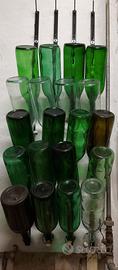 Occasione per cantine, birrifici artigianali o hobbisti. Vendo stock di circa 400 bottiglie in vetro integre e di ottima qualità. Incluse rastrelliere a parete e pavimento su 4 lati. Composizione del lotto: modello grande con chiusura a tappo meccanico (gancio e guarnizione), formato da 1L, sia con tappo meccanico che per tappo sughero. Vetro verde scuro e trasparente, ideali per ogni tipo di conservazione alimentare.