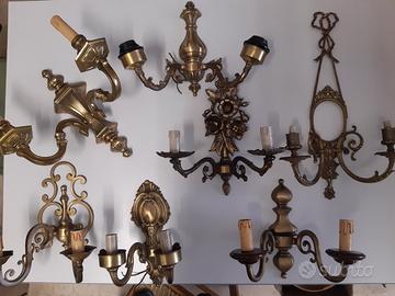 Stock di 7 aplich antichi doppi per poter montare lampadine led come da foto. € 105 totale 15€/pz