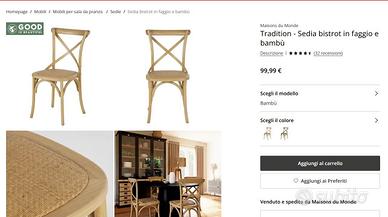 Vendo n. 70 sedie bistrot modello TRADITION, acquistate da Maison du Monde, pari al nuovo, utilizzate pochissimo.