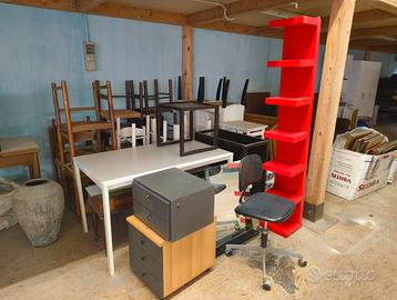 Vendesi in stock: 2 comodini in legno, 1 comodino in legno vintage, 1 portabottiglie, 1 libreria, 1 tavolo da pranzo bianco ikea, 2 tavolini bassi in legno scuro, due tavolini bassi bianchi ikea, 1 consolle bassa con cassetti vintage. Tutto in stock previo ritiro a domicilio in zona Pineta Sacchetti Gemelli