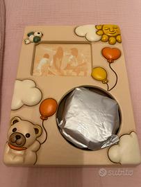 3) Atelier Portafoto con riquadri multipli fino al compimento del primo anno con soggetto Elefantino, realizzato in metallo argentato - Atelier