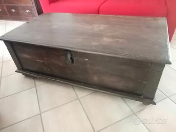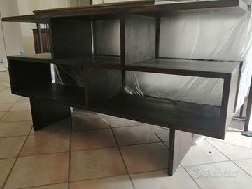 Composizione di 3 librerie/scaffali, 1 cassettiera molto bella, 1 grande baule/tavolo per divani.