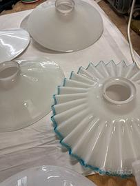Vendo 6 pezzi introvabili paralumi lampadari fatti a mano in vetro opalino originali dei primi ‘900. Varie misure tra 24 cm e 29 cm. Spedizione assicurata in tutta Italia con imballaggio adeguato alla fragilità dell’oggetto.