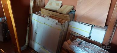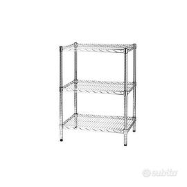 vendo stock scaffali in metallo DUEPIU' 13 ripiani 45.5 x 91.5 colore argento impilabili + 9 scatole gambe colore nero (due gambe per ogni scatola) altezza 117 cm + 4 scatole gambe colore nero altezza 137 cm + diversi accessori per rinforzo struttura.