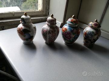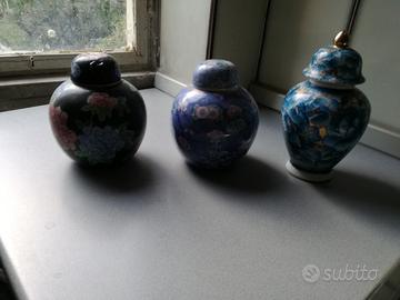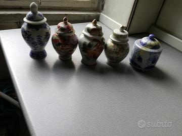 Cedo stock di 41 Vasetti Cinesi piccoli medi e grandi, alcuni son ancora sigillati ( vedi foto ) in ceramica e 5 Campanelle in ceramica, chiedete pure per tutte le foto perchè ne fan inserire solo sei.