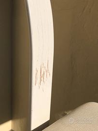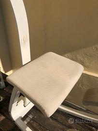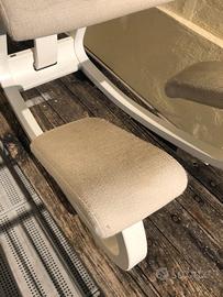 Sedia Stokke ergonomica Varier Variable Balans con schienale, colore bianco, usata. Tessuto con leggere macchie dovute all'utilizzo, lavata con sapone di marsiglia e omino bianco per tessuti per pulire e igenizzare.