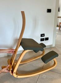 Sedia ergonomica Stokke Varier Variable in legno di faggio con schienale mai usato da poter applicare e doppio set di copri sedile e appoggi per ginocchia.
