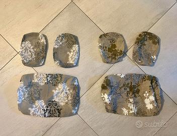 Cuscini in ottimo stato. Tessuti originali perfetti poichè usati sempre con copertura. 2 copri seduta e 2 paia di copri appoggi per ginocchia fatti su misura (1 set presenta usura sugli angoli dei copri ginocchia)