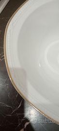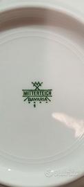 Colore bianco con ai margini delicati motivo in rilievo con pallini e gigli, bordo dorato . Ogni pezzo riporta il marchio Bavaria che si vede in foto.
