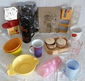 - 3 coppe, 2 bicchieri rosa, 1 tazza azzurra, in plastica, tutti 6 euro 2.
