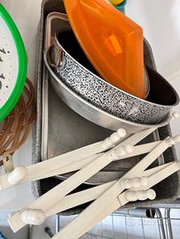 Ferro piatti Tupperware,,tegami bilancia orologio a muro …..