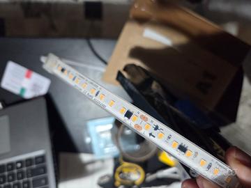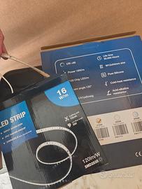 vendo due bobbine di strip led, una striscia da 5m e una da 10m per un totale di 15 metri, a 220V , colore luce calda 2700k, con taglio ogni 10cm, adatta per interno ed esterno con certificazione Ip67 per la pioggia, con biadesivo, dimmerabili, acquistate su noto sito italiano, potete verificarne la qualità. Nuove, mai installate