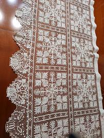 Sotto tenda o Mantovana, lavorata a mano a Filet modano, Nuova mai inserita... Mis 46/240 cm.