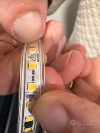 Striscia LED 220V 7 metri – Luce naturals – Impermeabile Vendo striscia LED lunga circa 7 metri, luce naturale (3000K), ideale per illuminazione di ambienti, mobili, mensole, cucine o decorazione casa. ✔️ Funzionamento diretto a 220V (no trasformatore) ✔️ Rivestimento in silicone → impermeabile ✔️ Alta luminosità (circa 120 LED/metro) ✔️ Flessibile e facile da installare La striscia è perfettamente funzionante come da foto. Prezzo: 30€ Consegna a mano
