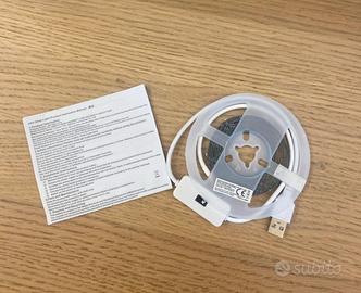 Vendo striscia LED da 5 metri nuova, mai usata e ancora nella sua confezione originale protettiva. Perfetta per illuminare gli spazi di casa in modo pratico, veloce e senza sprechi grazie all'accensione automatica! 💡 Caratteristiche principali: • Lunghezza: 5 metri (perfetta per coprire ampi spazi, come tutto il sottopensile della cucina o il profilo del letto). • Colore luce: Bianco Freddo (Cool White), per un'illuminazione chiara, moderna e pulita. • Sensore di movimento: La comodità assoluta. Si accende da sola al tuo passaggio. Ideale per corridoi notturni, scale, cabine armadio, ripostigli o sotto i mobili del bagno. • Alimentazione: Attacco USB comodissimo. Puoi alimentarla con un normale caricatore del cellulare, attaccarla direttamente alla TV, a una presa USB a muro o persino a un Powerbank se devi illuminare una zona senza prese di corrente! • Condizioni: Articolo NUOVO, mai srotolato. Completo di busta originale e foglietto illustrativo.