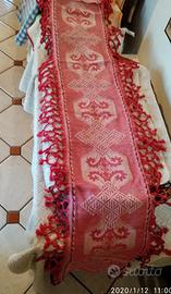 Per tavolo, Mensola, cassapanca, antica striscia con frange ricavate dalla stessa stoffa, primi novecento. Mis 2 MT x 22 cm frange escluse. Dal baule della nonna. + Spedizione