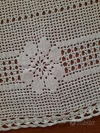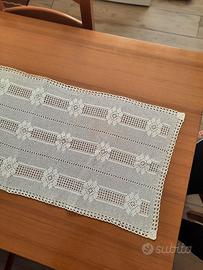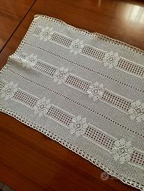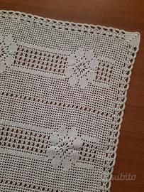 Striscia centro tavola rettangolare, lavorazione a mano con uncinetto, cm90 per cm37. Fatta talmente bene che non si distingue il dritto dal rovescio veramente confezionata ad opera d'arte.