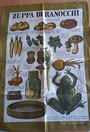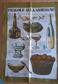 2 d'autore firmati da Ken Scott per Zucchi, design iconico e coloratissimo con illustrazioni di ricette tipiche Zuppa di ranocchi e fragole alla Giordano, misto lino di alta qualità (ordito puro cotone trama puro lino) misure 54cm x75 cm