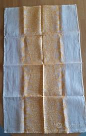 1 giallo/oro e bianco, motivo ornamentale su tutta la lunghezza in puro lino. Misure 48 cm x 80