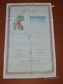 Strofinaccio Cucina / Canovaccio / Asciugapiatti Vintage in 100% puro Cotone a tema Zodiaco con il segno dell'Ariete.