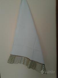 Vendo completo strofinaccio +guanto forno , interamente realizzato a mano, in damina di puro coltone color panna.
