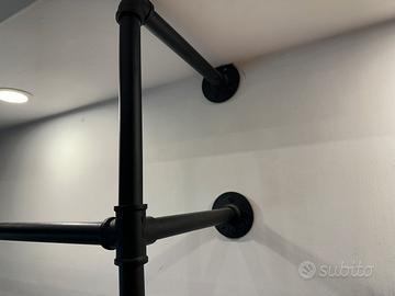 Struttura a muro appendiabiti Pamo Design utilizzata solo un anno in un negozio di abbiagliamento. Stile industrial e materiale estremamente resistente è progettata per appendere vestiti di tutti i tipi. La barra centrale è stata tolta per poter appendere anche soprabiti e cappotti lunghi, in ogni caso è stata tenuta e fa parte del set.
