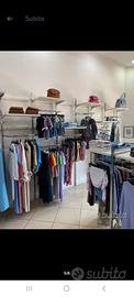 Vendo struttura arredamento negozio, come in foto, compresa di mensole..Nuova usata solo per 7 mesi. Non ha segni di usura. Le mensole si dividono in mensole da 60 cm e mensole da 1 metro, stessa cosa per le aste alcune sono 60 cm e altre sono 1 metro.