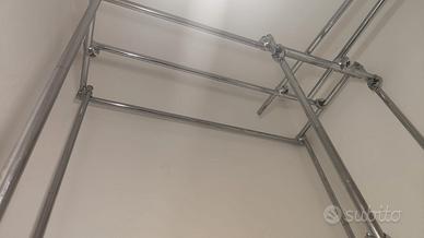 vendo per trasloco, struttura da NEGOZIO adattabile in qualsiasi spazio/cabina armadio. I tubi sono smontabili e rimontabili in base alle esigenze e per questo adattabili ad una cabina armadio su misura. Dispongo inoltre di altri nodi/pali non utilizzati mai per renderla volendo ancora più capiente. la struttura nasce per negozi pertanto è molto resistente. materiale di altissima qualità.