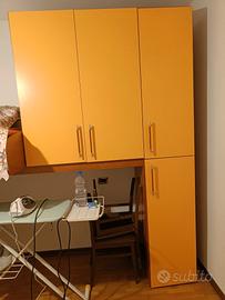 Mobile per arredo camera bambini ben tenuto, color arancione e marrone. Lunghezza 350 cm, profondità 90 cm e altezza 245 cm. Vendita solo struttura senza materasso. Per eventuale consegna sovrapprezzo in base alla distanza.