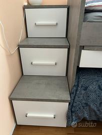 Vendo struttura di una camera per ragazzi, mondo convenienza in perfette condizioni. Sono presenti due letti, scrivanie estraibili con cassetti sottostanti. Tre scalini contenitore. Il letto basso è dotato di quattro cassetti porta biancheria.