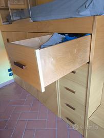 struttura cameretta ragazzo, composta da letto, armadio e scrivania