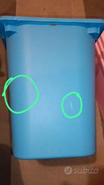 Contenitori: Alcuni punti bianchi sulle plastiche colorate dovuti alla pressione interna di oggetti, che non ne compromettono affatto la resistenza.
